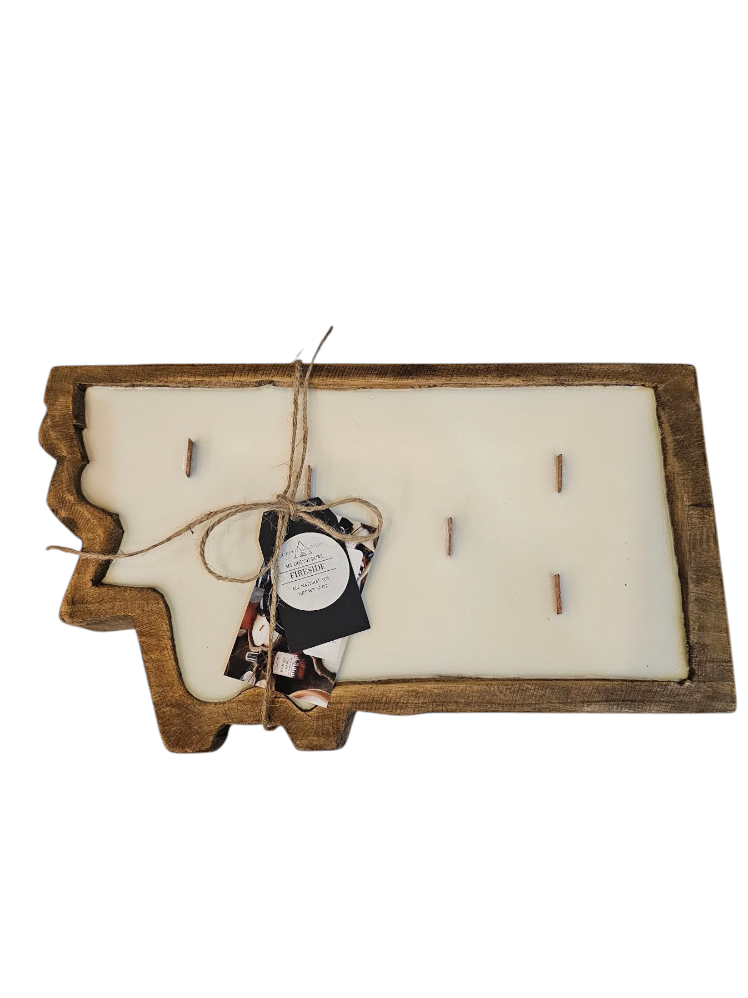 Show off your Montana pride and fill your space with the cozy scent of campfire comfort. The Montana Dough Bowl Candle – Fireside features a hand-poured soy wax blend in a rustic, reusable wooden bowl shaped like the state of Montana. With notes of tobacco, chestnut, and marshmallow, this candle is perfect for gifting or adding cabin-inspired charm to any room.