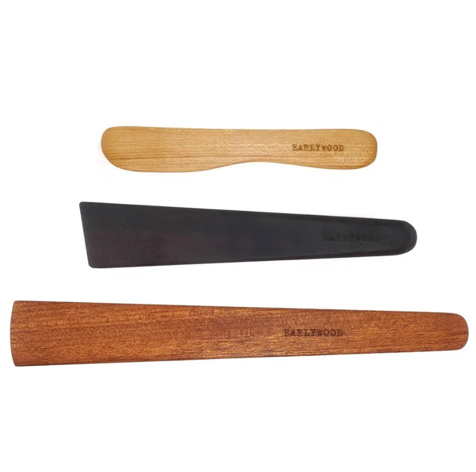 Meet the ultimate trio for your kitchen — The Trifecta from Earlywood. This handcrafted set of premium hardwood utensils includes three of their most popular tools: the ideal flat sauté tool, a super-handy scraper, and a perfectly sized spreader. Whether you're cooking up a storm or crafting the perfect charcuterie board, this set is built to handle it all.